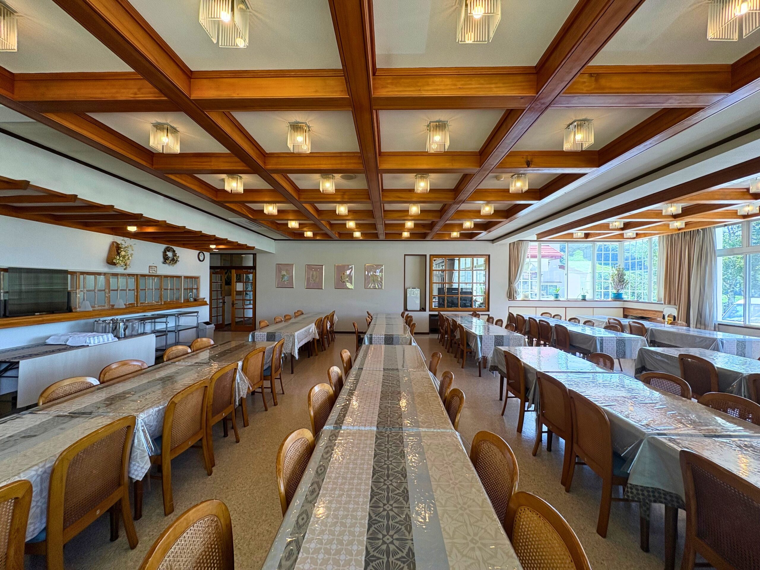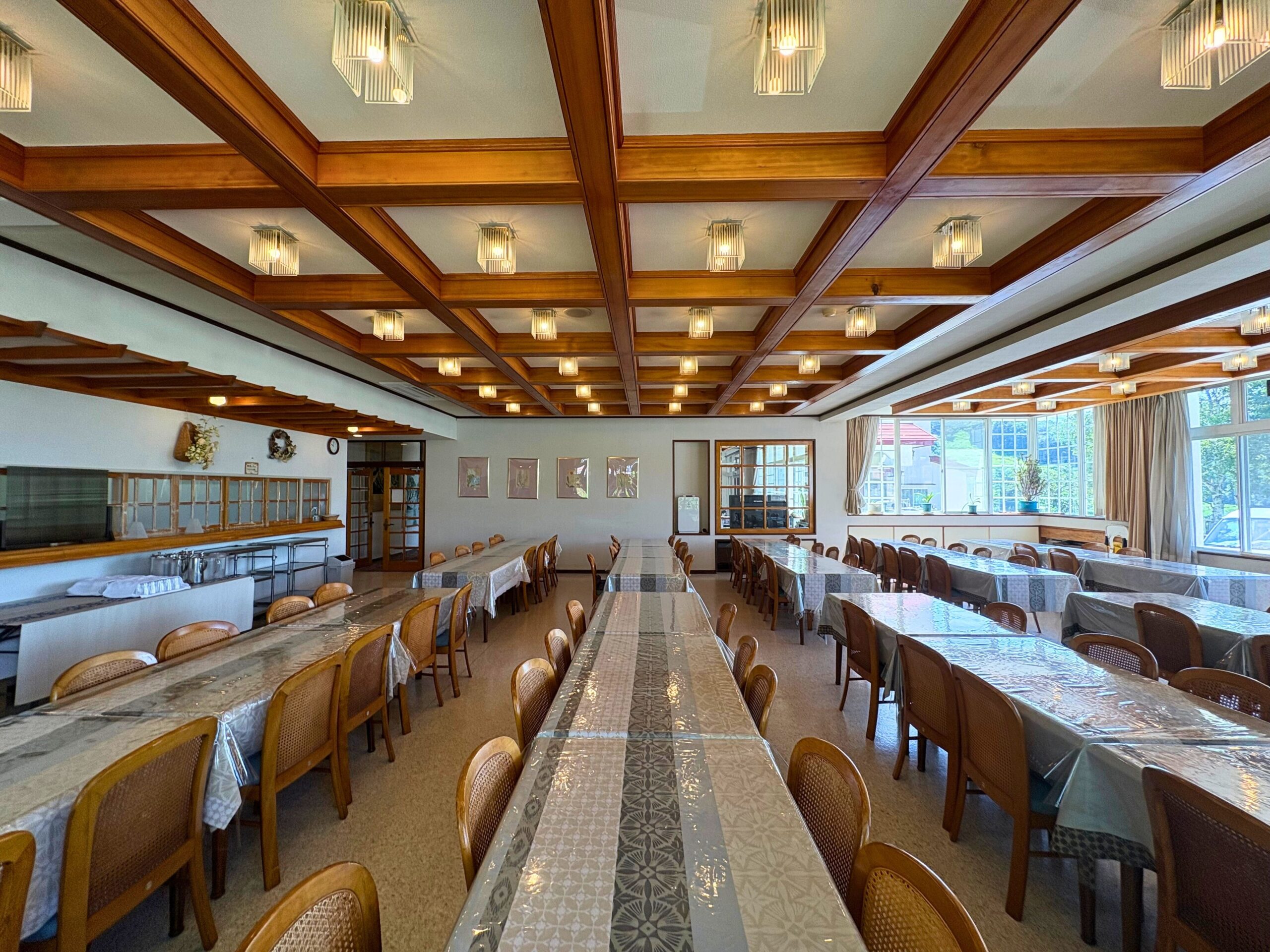 開放的なレストランや共有スペースでは、旅人同士が自然に会話を交わし、大浴場やスキー・ボードの保管エリアでは、雪山での一日を語り合う笑顔が広がります。